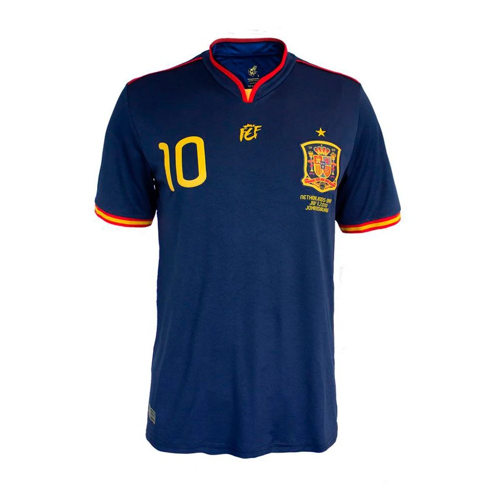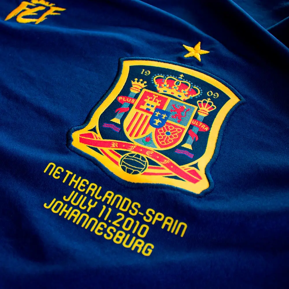El diseño presenta el logo, el escudo de la RFEF y la estrella de campeones del mundo bordados en el pecho. Recibirás la edición coleccionista en caja exclusiva de serie limitada y podrás optar por la camiseta numerada Dorsal 10 en la espalda, recordando los 10 años desde la final.